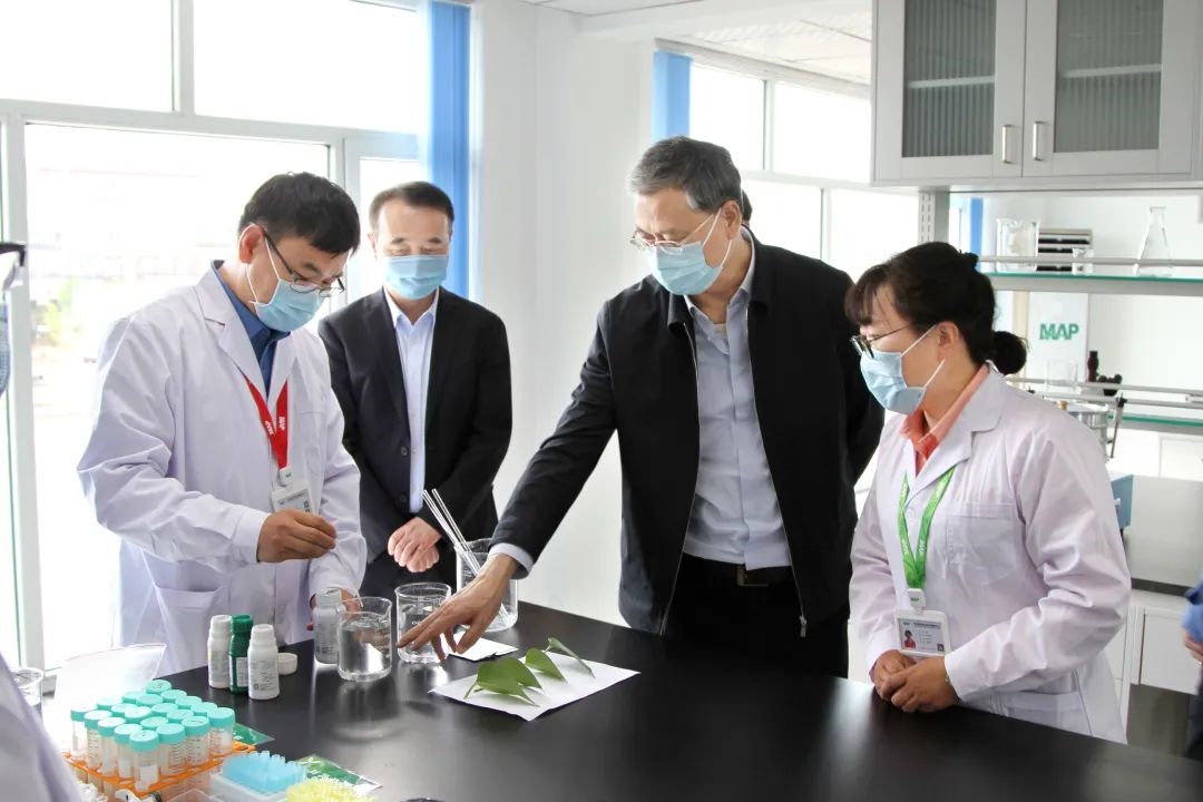 隨后,李凡榮一行參觀MAP梨樹中心農(nóng)友之家、實(shí)驗(yàn)室,重點(diǎn)了解梨樹區(qū)域中心布局情況,MAP農(nóng)場(chǎng)技術(shù)集成與創(chuàng)新迭代情況,詳細(xì)詢問了MAP為農(nóng)戶提供的產(chǎn)品方案和全程技術(shù)方案給農(nóng)戶帶來(lái)的成效和累計(jì)收益,以及MAP beside全程品質(zhì)溯源產(chǎn)品的發(fā)展情況和MAP智慧農(nóng)業(yè)應(yīng)用情況。李凡榮表示,看到MAP吉蒙省區(qū)所有工作人員的敬業(yè)精神,十分感動(dòng)。通過MAP的服務(wù),給農(nóng)民增加了實(shí)實(shí)在在的收益,這令所有人感到欣慰。