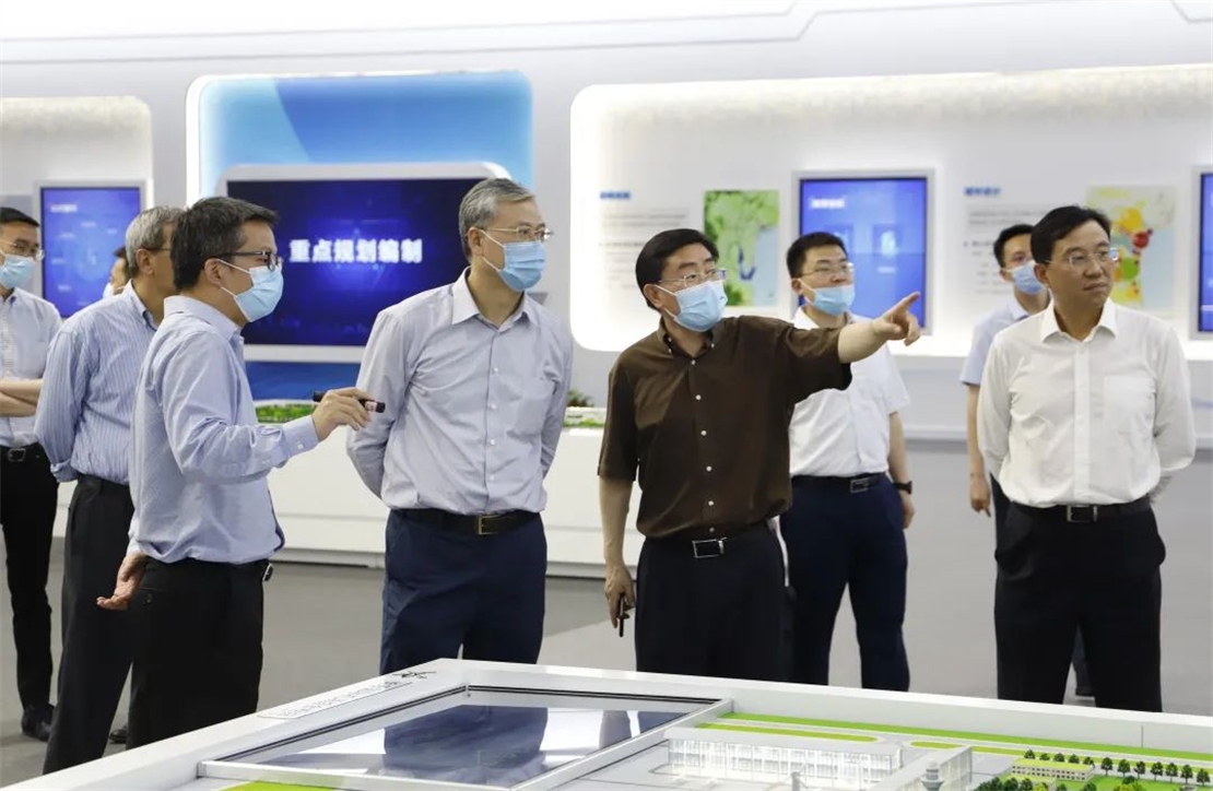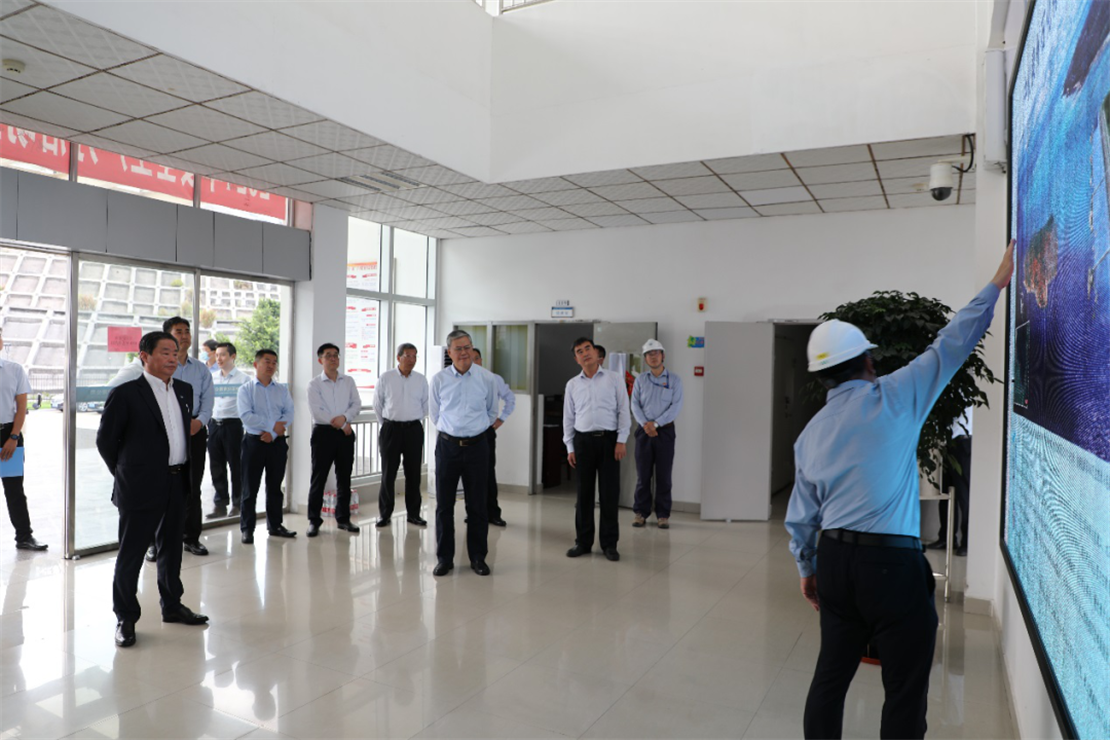 圖為寧高寧、李凡榮一行在乙烯項目中控室調(diào)研乙烯項目總體生產(chǎn)情況