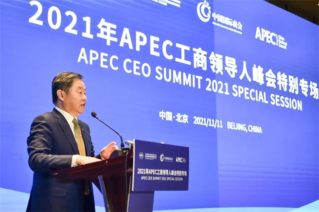 11月11日,2021年亞太經(jīng)合組織(APEC)工商領(lǐng)導人峰會開幕。作為APEC中國工商理事會主席、APEC工商咨詢理事會(ABAC)中國代表,中國中化董事長寧高寧出席中國貿(mào)促會等舉辦的特別專場活動,第一時間聆聽習近平主席的主旨演講,并發(fā)表致辭。當天,寧高寧出席2021年ABAC代表與APEC領(lǐng)導人對話會全體(視頻)會議,并主持第二組分組討論。
