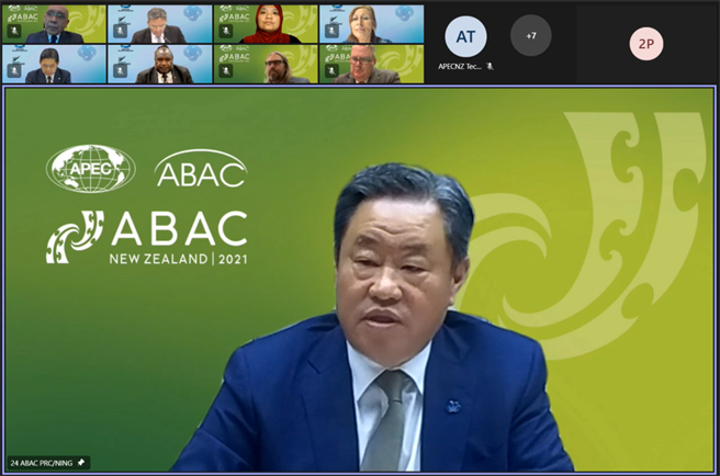 當天,2021年ABAC代表與APEC領(lǐng)導人對話會全體會議以視頻形式舉行。會議聚焦疫情下的經(jīng)濟復蘇、邊境開放、經(jīng)濟一體化、供應鏈韌性、氣候變化、中小企業(yè)及弱勢群體等可持續(xù)及包容性議題。寧高寧主持第二組分組討論,組織組內(nèi)代表重點圍繞后疫情時期區(qū)域經(jīng)濟復蘇、應對氣候變化及低碳轉(zhuǎn)型兩大議題,與巴布亞新幾內(nèi)亞總統(tǒng)、中國商務部部長、文萊金融與經(jīng)濟部部長、墨西哥經(jīng)濟部部長進行對話。