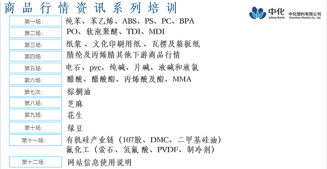 中化塑料作為化工品分銷商對市場行情的精準(zhǔn)研判是公司經(jīng)營管理中非常重要的能力。為進(jìn)一步提升業(yè)務(wù)人員準(zhǔn)確掌握商品行情的專業(yè)能力,促進(jìn)業(yè)務(wù)的不斷深耕,公司在調(diào)研員工需求的基礎(chǔ)上,邀請了國內(nèi)大宗商品領(lǐng)域具有影響力的卓創(chuàng)資訊公司和上海鋼聯(lián)有限公司,按照不同的化工品市場,從7月中旬到8月下旬,共開展了涵蓋工程塑料、聚氨酯、造紙、有機(jī)硅、油脂林化等9個產(chǎn)業(yè)鏈近40種商品的12場培訓(xùn),公司共有750余人次參與。